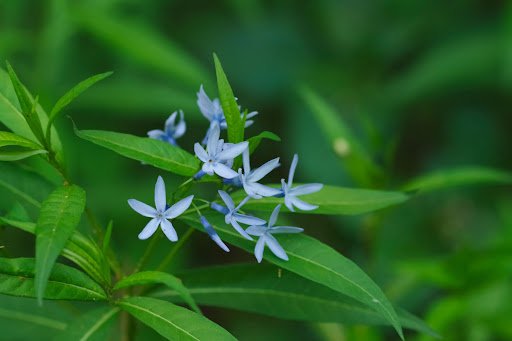 チョウジソウはスラリと伸びる草姿がスタイリッシュ。星に似たブルーの花も涼やかです。秋には葉が黄色く紅葉し、大人シックな雰囲気に。