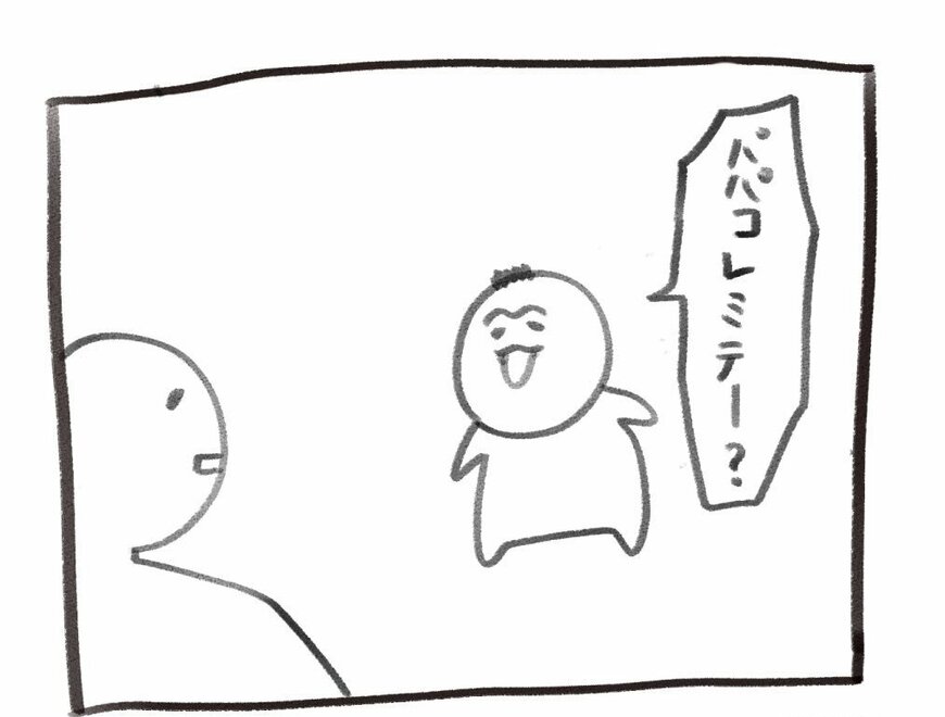 「@inu_eat_inu」さんのお子さん「ちょーちゃん」は遊びたい盛りの2歳児。ある時、父に向って、「パパコレミテー?」と言ってきます。
