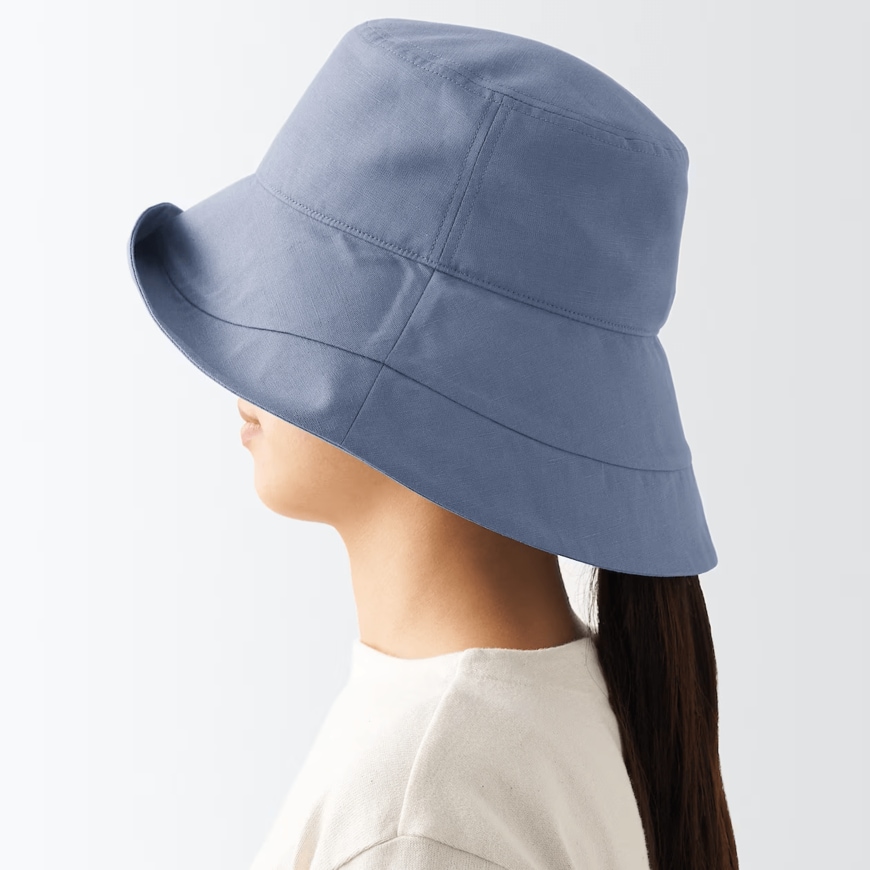 リネンが40%入っている生地なので軽く、風合いが良いです。つばが広く大きく覆うことができるので、首元の日焼けが気になる方におすすめです。