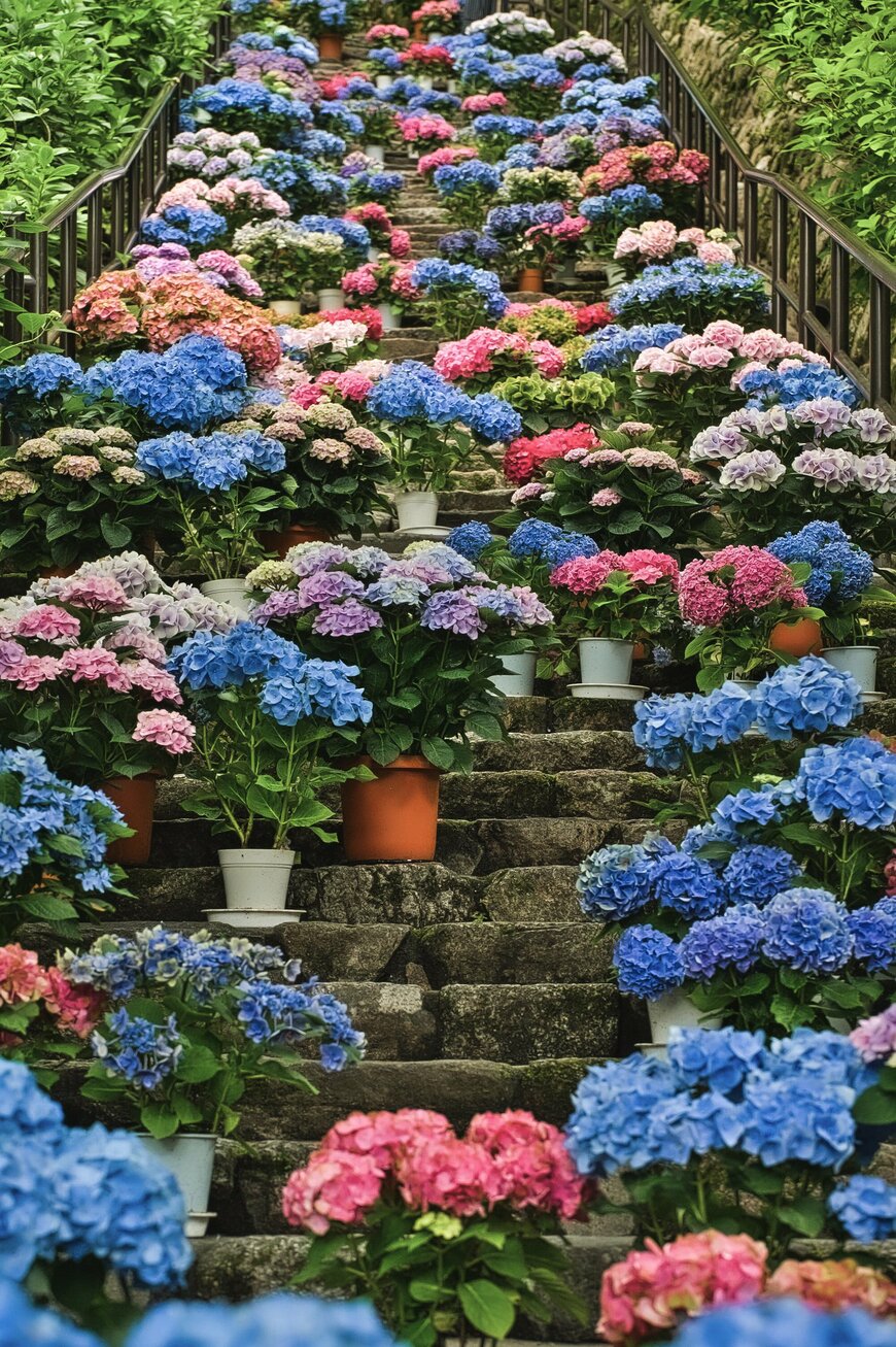 紫陽花で溢れた階段のぼってみますか? pic.twitter.com/Ae8dbj1z36