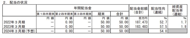 ゆうちょ銀行の株式を1年前に買い、持ち続けたとすると、「2023年3月期の期末配当」の計1回を受け取ることができます。