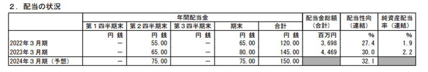リコーリースの株式を1年前に買い、持ち続けたとすると、「2023年3月期の中間配当と2023年3月期期末配当」の計2回を受け取ることができます。