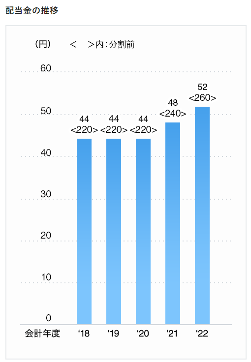 最後にトヨタの配当金の推移を確認しましょう。