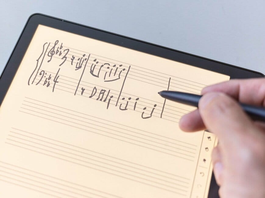 さらに音大出身者として激推ししたいのは音楽用途の活用。メモの背景には五線紙も含まれていて、思いついたメロディなどを書き留めることができます。