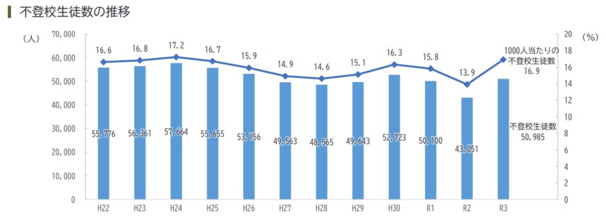 1000人当たりの不登校生徒数は16.9人と、子どものいる家庭では他人事ではない問題です。