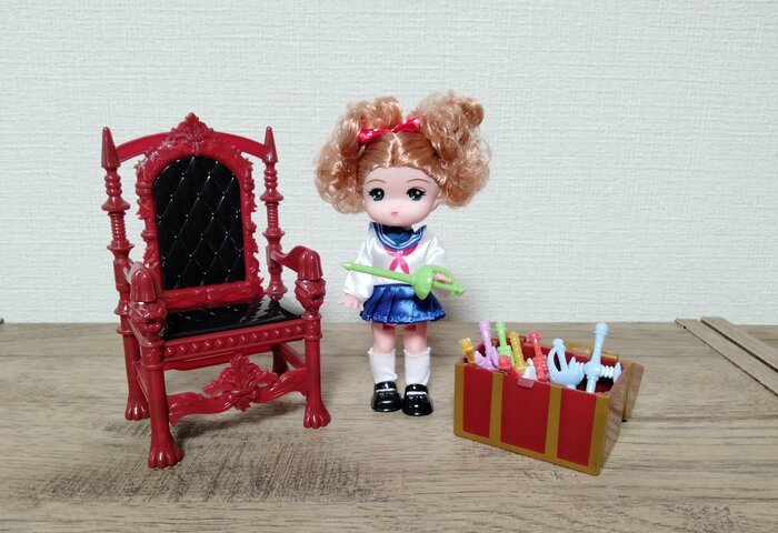 セリアの玉座は人形を座らせても素敵! ただしリカちゃんにはやや小さいので注意