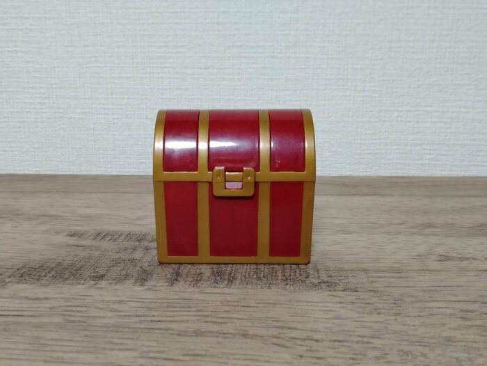 こちらは宝箱(税込110円/JANコード4977498250834)です。RPGの世界の、地下迷宮の宝箱のようです。実際に開くことができるので、内側に宝石などを入れることが可能です。