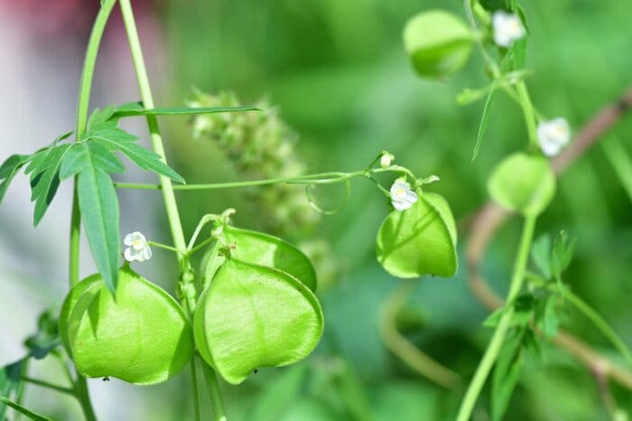 フウセンカズラは風船のように膨らんだ実がユニークな一年草。ライトグリーンの涼しげな果実がなる姿は、馴染みがある人も多いことでしょう。