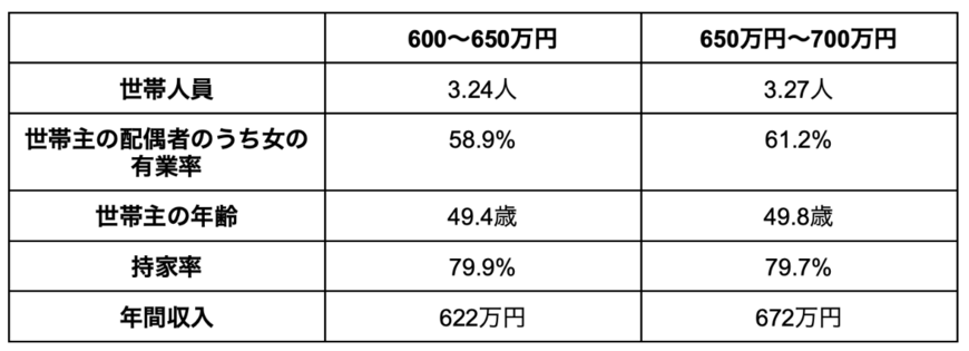 平均貯蓄額は「600万円〜650万円世帯」で1130万円、「650万円〜700万円世帯」で1134万円です。
