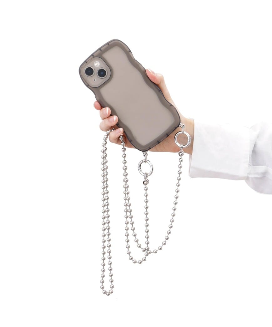 こちらは、ボールチェーンのスマホストラップです。ファッションのワンポイントになる、少し大きめのチェーンがおしゃれですね。
