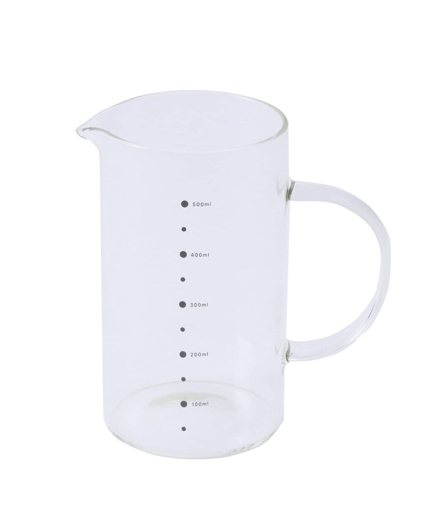 こちらの耐熱計量カップにはMサイズのほかSサイズもあります。Mサイズは約500mlを入れることができ、電子レンジ、食洗機が使用可能です。