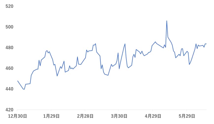 ENEOSホールディングス(5020)の株価は2023年に入って以降は概ね堅調です。