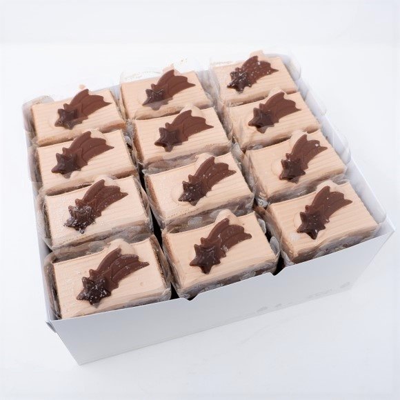 ココアスポンジでチョコクリームをサンドしたケーキです。同じケーキが12個入っています。