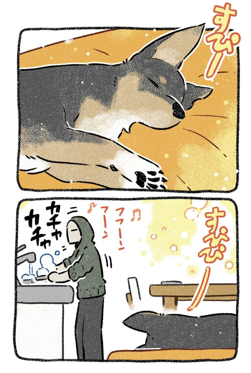 愛犬が気持ちよさそうに眠っている隙に寝顔を写真に収めておきたい――。いま、そんなあるある体験を描いた漫画がTwitterに投稿され、注目を集めています。