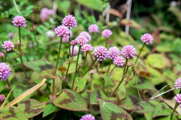 ニチニチソウをメインにして、銅葉のヒメツルソバとアジュガを組み合わせて、大人っぽい色合いを楽しみましょう。ヒメツルソバの球形の花は寄せ植えのアクセントにもなります。