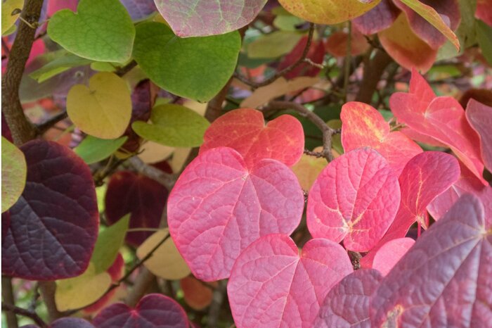 ハート型の葉が可愛らしいマルバノキはナチュラルな雰囲気がオシャレな低木。晩夏から秋にかけて紅葉し、緑葉と紅葉が入り混じる美しい姿を楽しめる樹木です。