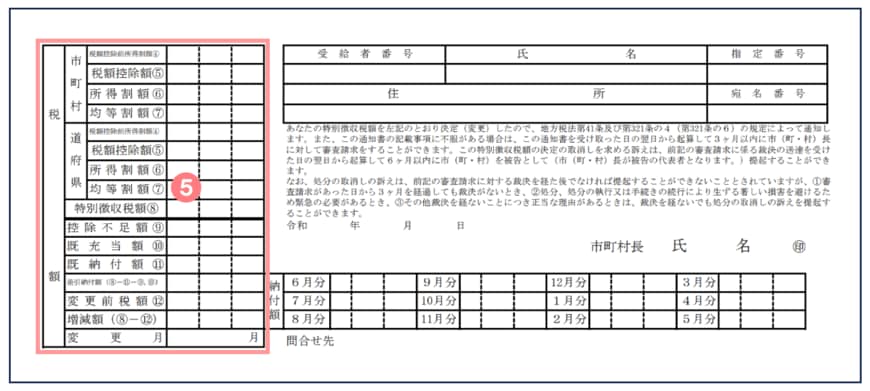 - 税額欄・・・課税所得をもとに算出された住民税が記載