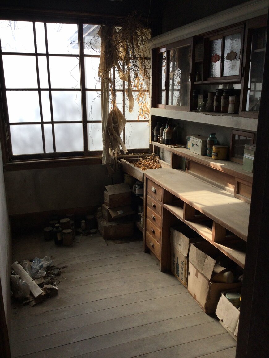 線路を挟んですぐの場所に建っていた宮守医院は、草木に覆われていたのだそう。同じ敷地にある入院棟は半分朽ちていたのに対し、診察室がある建物は比較的きれいな状態だったといいます。