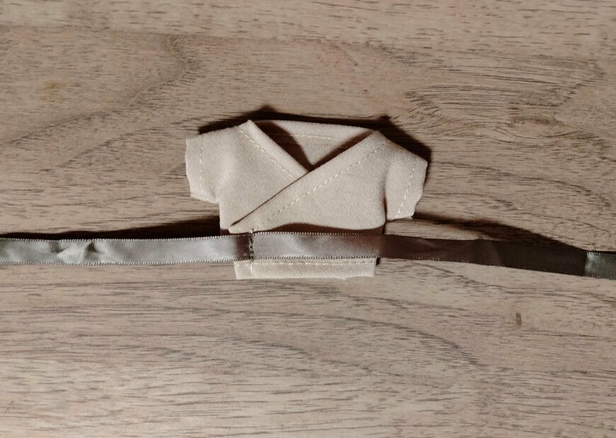 帯は浴衣本体に縫い付けられています。帯がずれにくく、ぬいぐるみに着せやすいです。