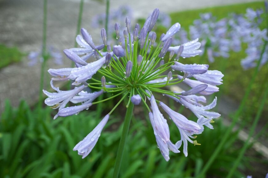 アガパンサスは透き通るような淡い紫の花が涼しげ。細長い葉を放射状に広げ、中心から太い茎を立ち上げて花を咲かせます。パッと咲き開くと夏の花火のように華やかです。※参考価格:400~800円前後(3号ポット苗)