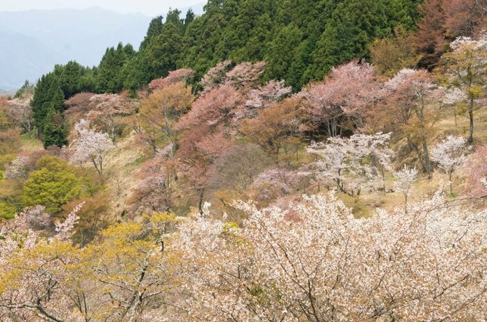 奈良の吉野山では、かつて役行者(えんのぎょうじゃ)が1本のヤマザクラにご本尊を刻んだことから、御神木として信仰されました。以来吉野山一帯にはつぎつぎと桜が植えられ、今に至っています。