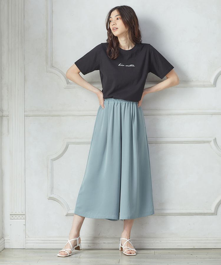パンツでありながら、裾に向かって広がるAラインがスカートのようなアイテムです。オフィスカジュアルコーデにも活用することができそうです。