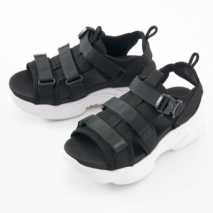 「FLASHBLUE」のサンダルが登場しました。ホワイト・ブラックの2カラーなので、シンプルでどのようなファッションにも合わせやすいデザインになっています。5.5cmのヒールがあります。