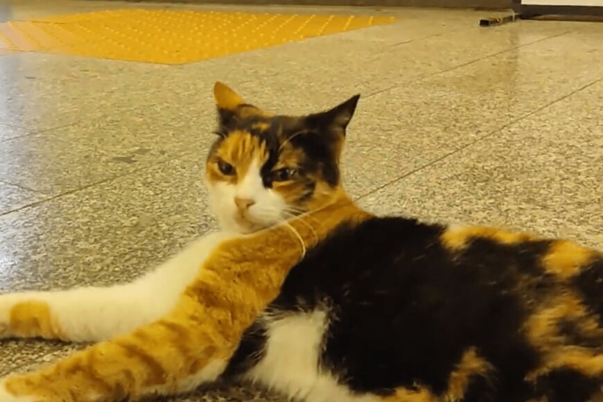 そこに収められているのは、駅の構内でくつろぐ猫の姿。床がヒンヤリして気持ちよいのでしょう。リラックスした様子が伝わってきます。