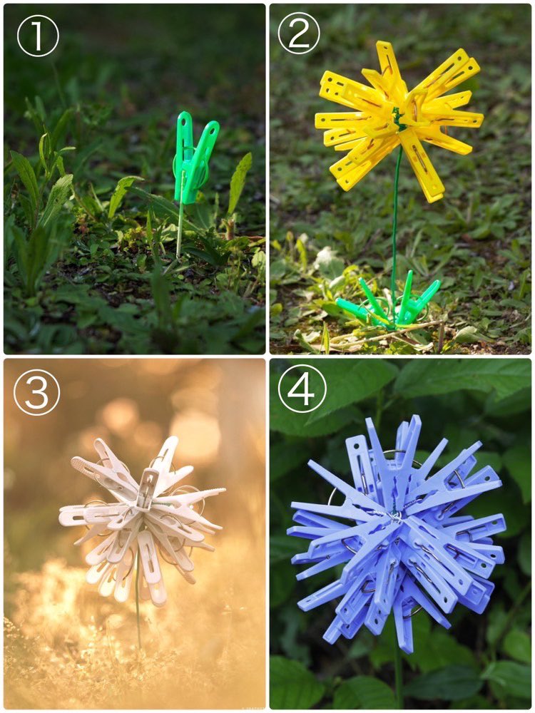 そこから「(2)洗濯バサミ草の花」「(3)洗濯バサミ草の花(綿毛)」「(4)洗濯バサミ花(紫陽花)」と発展し、だんだんとバズるようになったのだといいます。