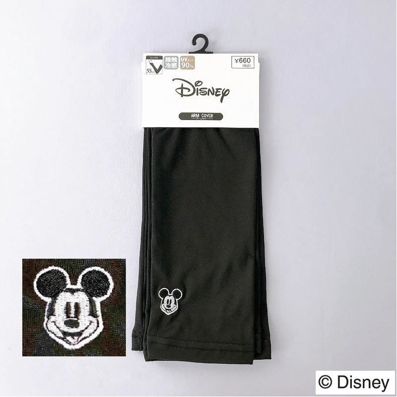 さりげなく入ったミッキーの刺しゅうがかわいい、アームカバーです。日差しの強い日の外出も、ミッキーと一緒なら、少し気分が上がりそう。