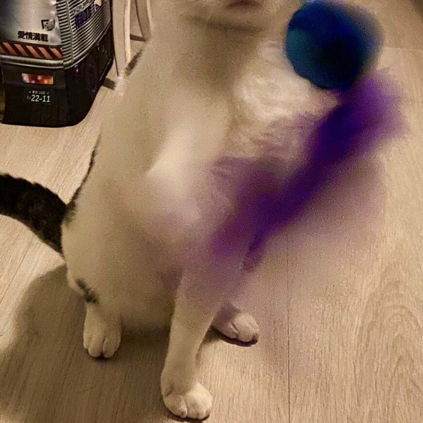 投稿された写真には、持ってきた猫じゃらしの前で俊敏に手を動かすセロイくんが写っていました。真顔でじゃれるセロイ君の表情からは、おもちゃに対する夢中具合が伝わってきます。