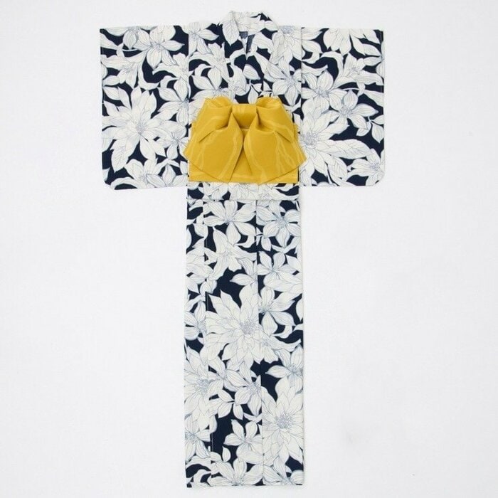 ゆかた定番の柄の百合のデザインを流行りのモノトーン調に。白ベースの花の配色し涼しげですっきりとした雰囲気が楽しめる浴衣です。