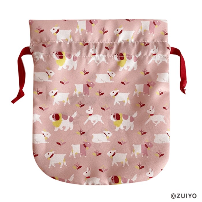 表側は「ハイジと子ヤギのユキちゃん」、裏側には「山羊と犬のヨーゼフ」の絵柄がプリントされた丸くて可愛い巾着です。コスメなどの小物収納におすすめのアイテムです。