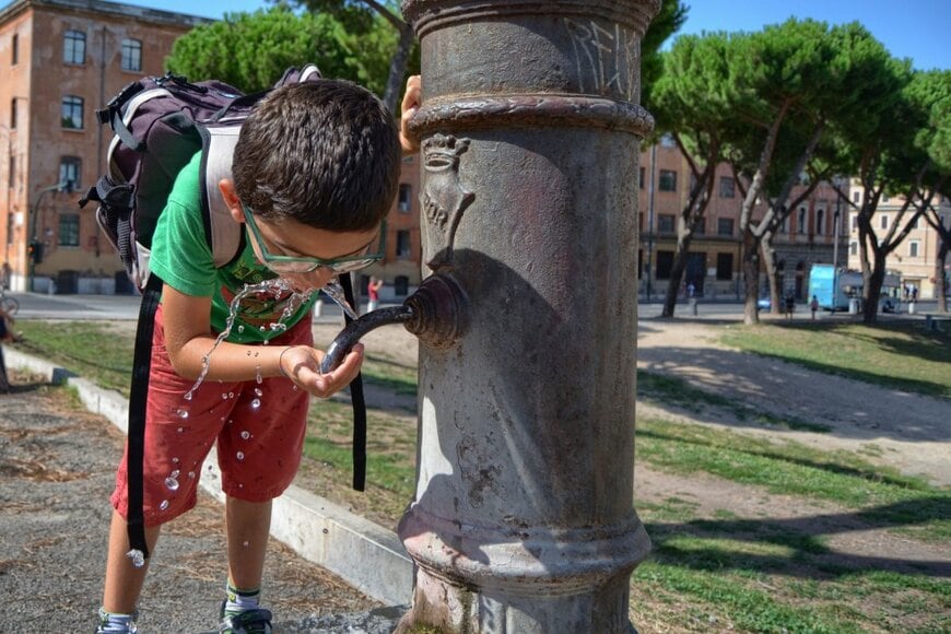 古代ローマ時代から水道橋が発達し、豊かな水を享受してきたイタリア人は、こうした公共の水を飲むことにも抵抗がないようです。むしろ水道水よりもミネラルたっぷり、おいしいお水として愛飲している人も多いのです。