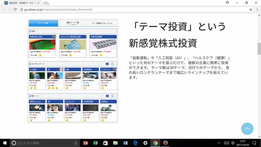 ■業界最大手もテーマ投資に参入!SBI証券「テーマキラー!」