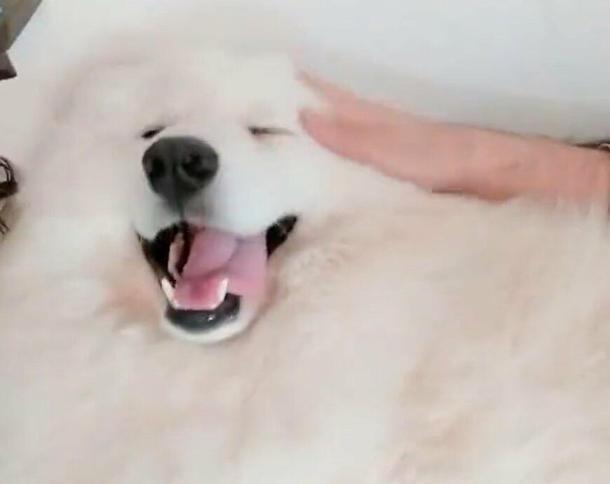 撫でられてねむねむ#サモエド #samoyed pic.twitter.com/kNGZP8Mgcp