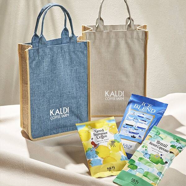 カルディでは、お得でかわいいセット商品を企画・販売しています。今回ご紹介する「夏のコーヒーバッグ」もそのひとつ。バッグには夏におすすめのコーヒー3種と使いやすいトートバッグがセットになっており、毎年完売になる人気のセットです。