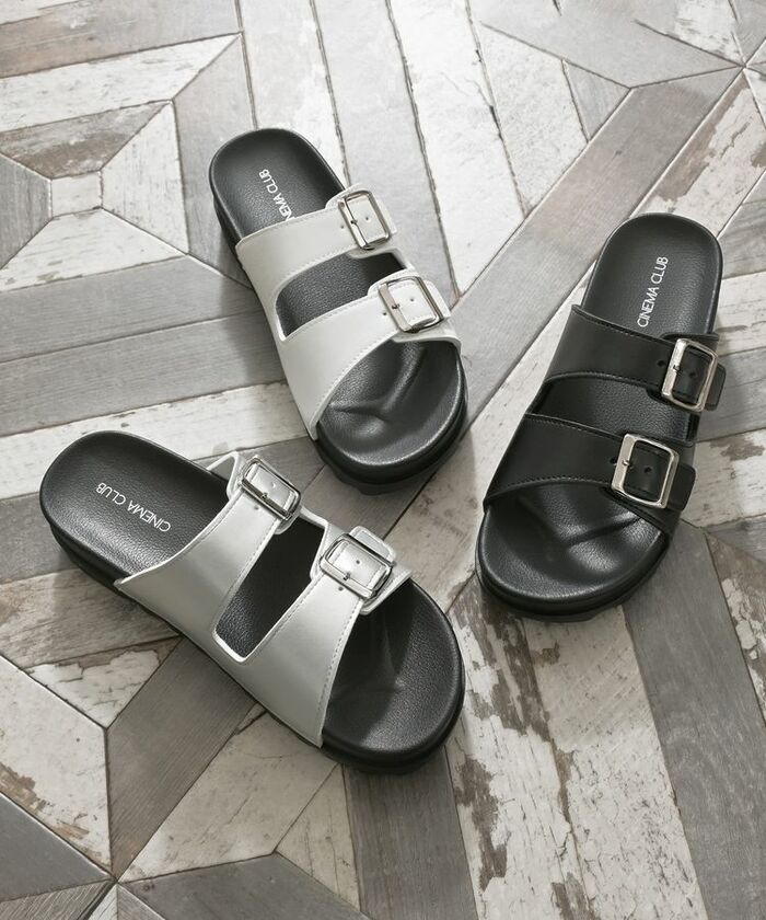 大き目のバックルがおしゃれな「ダブルベルトサンダル」です。価格は驚異の1780円(税込)です。