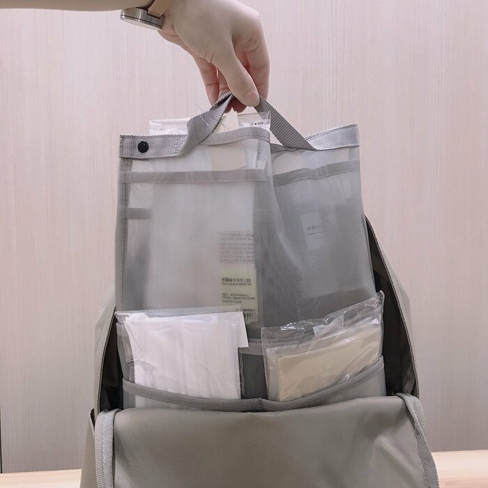 マスクや化粧品、モバイルバッテリーや充電コードといった外出の必需品をすっきりと収納することが可能です。こちらの「バッグインバッグ」があれば、ポーチは不要になるかもしれません。