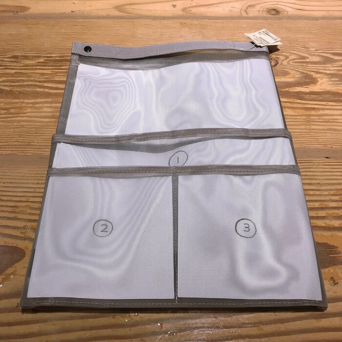 前方の下半分に3つ、内側上部に3つ、合計で6つのポケットがついています。