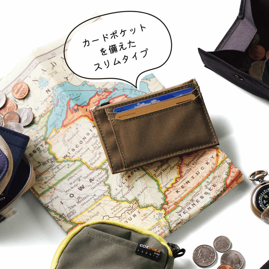 胸ポケットに入るサイズながら、札入れとカード入れはそれぞれ2つ、出し入れしやすいBOX型の小銭入れまで兼ね備えた、使いやすさ抜群のアイテム。
