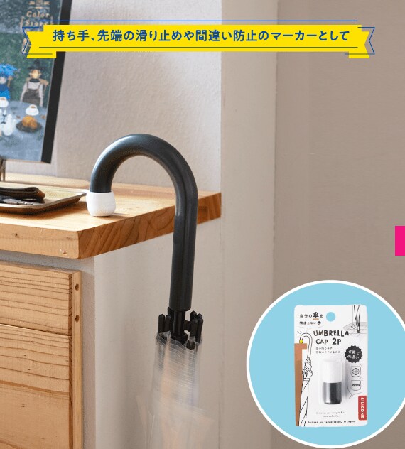 持ち手、先端の滑り止めや間違い防止のマーカーとして使える滑り止め、マーカーです。シリコン製なので滑りにくく、カラバリによってマーカー機能としても活躍してくれます。コンビニのビニール傘などにも対応しています。2個入りなので家族などでシェアして目印に使用すれば便利ですね。
