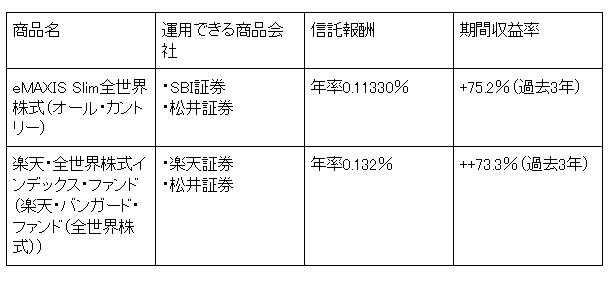 なかでも全世界株式は全世界の株式市場へ投資するスケールの大きな商品となっています。