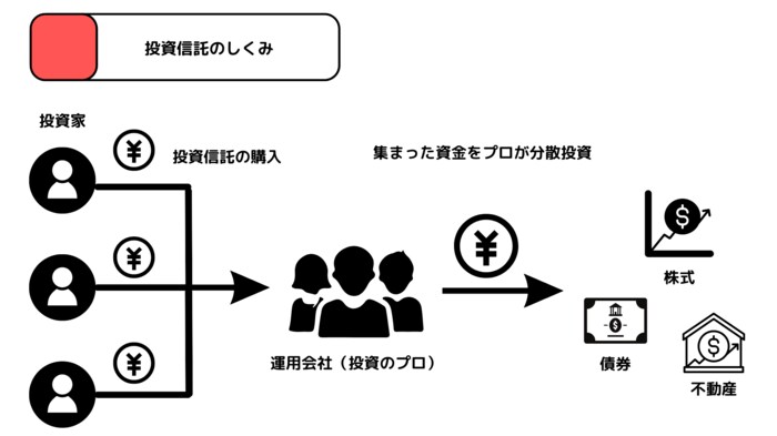 投資信託はプロが投資家の資金を多種多様な資産・銘柄に分散投資する投資商品です。