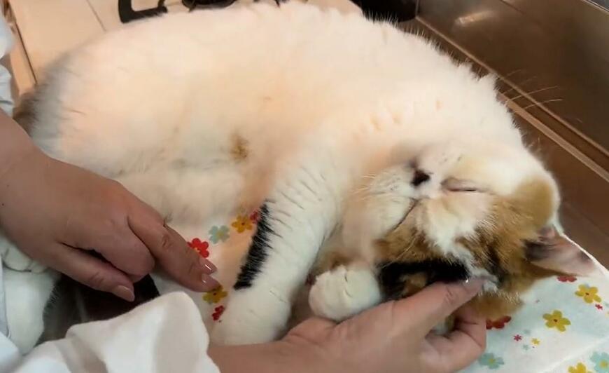 動画の最後では、頭をナデナデされて嬉しそうにするあんみつちゃん。大好きなママさんの温もりや、キッチンのひんやり感にリラックスしていたのかもしれませんね。