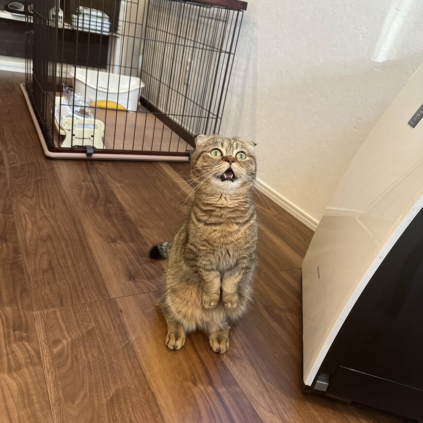 当ツイートには2023年6月23日時点で467件を超えるいいねが集まり「楽しい事が起こりそうな顔」「猫『起きましたよーーーーー!!』って全力で主張してる!!笑」といったコメントが寄せられるなど話題となっています。