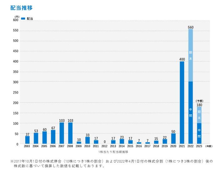 最後に商船三井の配当推移を確認しましょう。