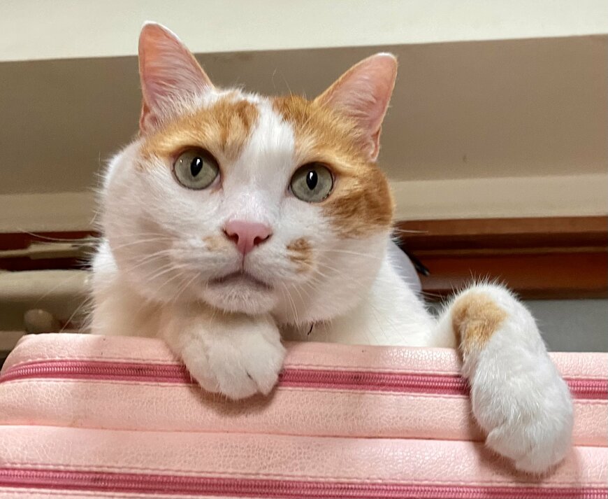 Twitterでたくさんの注目を浴びているのは「エル」くん。9年ほど前にレジ袋に入れて捨てられているところを保護されたといい、現在は御家族や同居猫ちゃんとともにおうち暮らしを満喫しています。