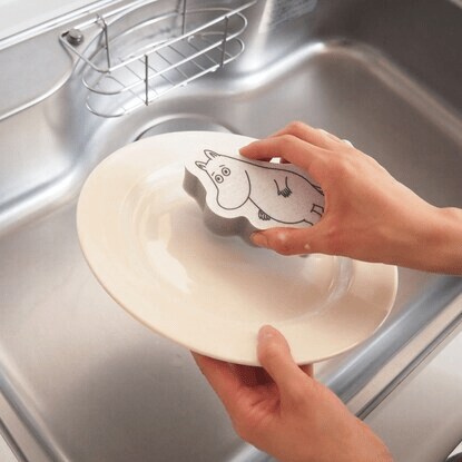 ムーミンキャラクターやムーミン屋敷の形がかわいいスポンジ。サイズや形が手にフィットしやすく、洗い物がラクに行えます。スポンジは自立するので、立てた状態で保管が可能。