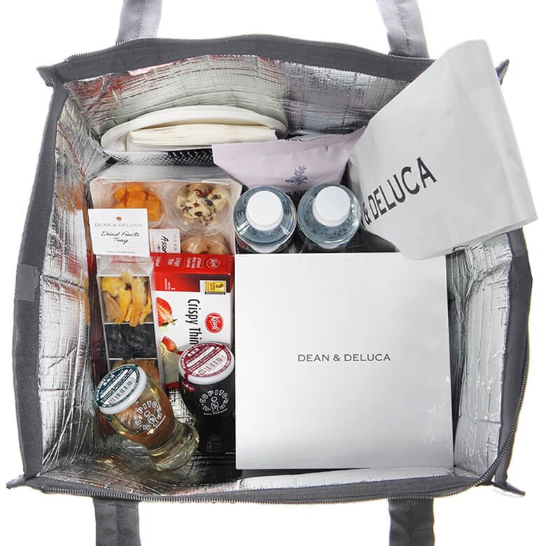 暑い日に重宝するのが保冷機能付きバッグ。Lサイズはマチが広く、内側のサイドにメッシュのポケットが付いていて、たくさん入れても中身が迷子になりにくい工夫が施されています。